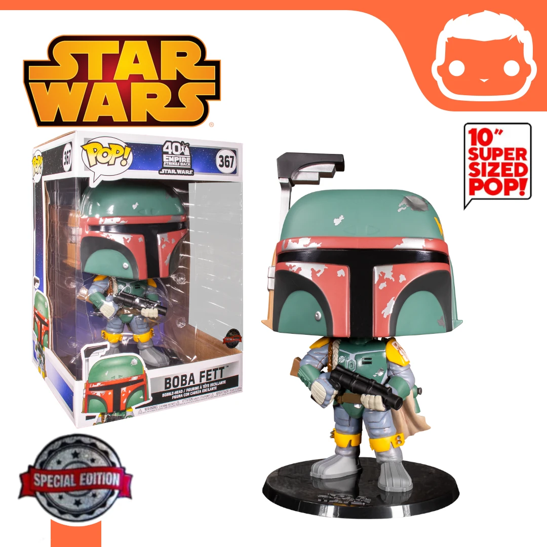 Boba Fett is one of the most beloved characters in the Star Wars Universe, despite the fact that he doesn’t really appear all that often in the films. In saying that, he helped capture Han Solo, froze him in carbonite and sold him to Jabba the Hutt. Now that’s pretty bad arse. However do you wanna know what’s even more bad arse? It’s Funko’s incredible new 10″ Boba Fett Pop! Vinyl Figure!