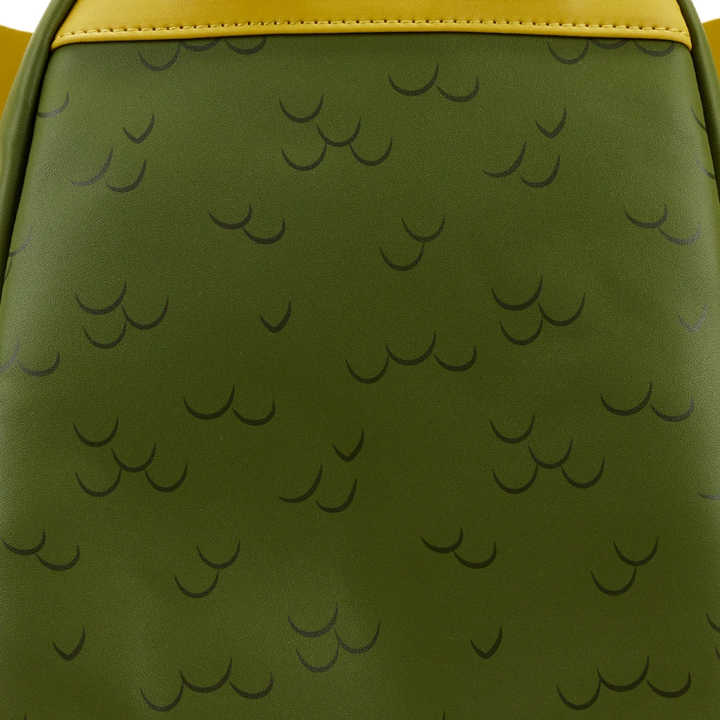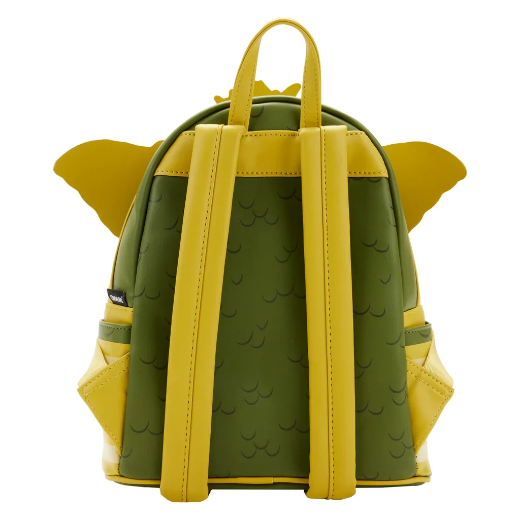 Yum! Yum! Stripe’s hunting for movie snacks and wants to follow you on this Funko Pop! by Loungefly Gremlins Stripe Cosplay Mini Backpack. There’s plenty of room in this backpack for stashing Stripe’s favorite candies—or for packing just what you need for a day trip. On the front of this backpack, Stripe comes to life in applique detail, his head and ears sticking over the top, with his characteristic shock of white hair spilling over. In fact, his face peeks out over a front zipped compartment, and the features of his debossed scales carry through on the side pockets. His 3D movie glasses snap on and off the backpack, and in the dark, the lighter yellow areas on his face and body glow! It’s the perfect accessory for tearing through Kingston Falls—or for turning everyday outings into mischievous fun.