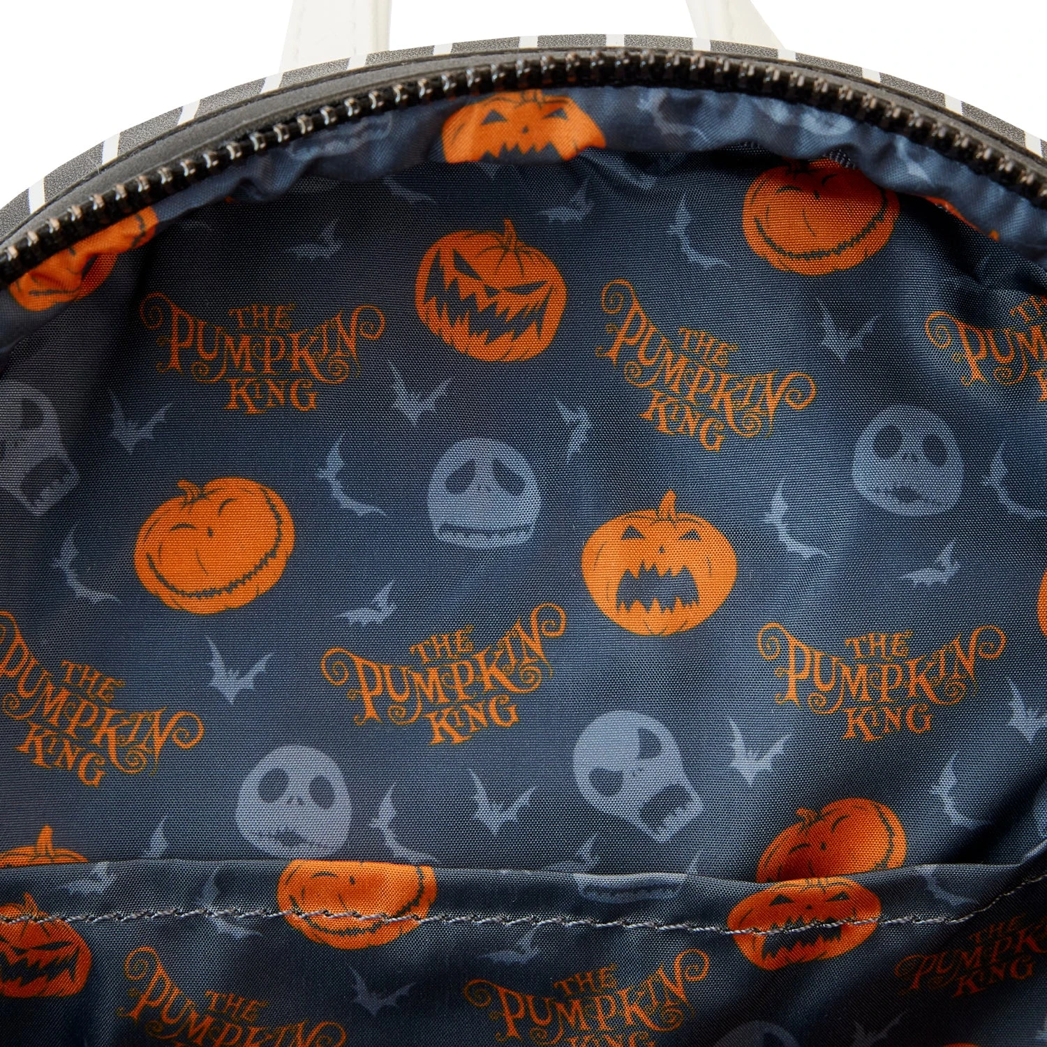 Sweep even the bravest off their feet with the Loungefly Nightmare Before Christmas Jack Pumpkin Head Mini Backpack! Taking the form of the Pumpkin King himself, the front of this accessory shows Jack Skellington as he treats the citizens of Halloween Town to a scare.